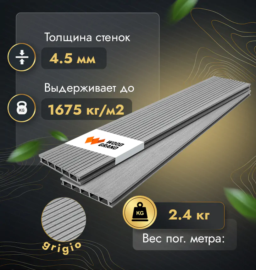 Террасная доска из МПК – это по-настоящему «каменная доска» - революционный материал в загородном строительстве. В основе доски из МПК - минеральная мука и связующие полимеры.